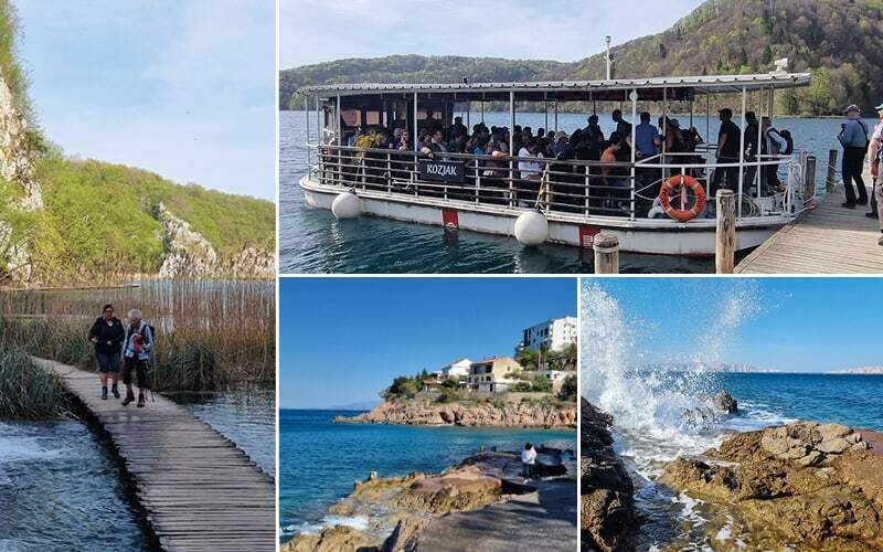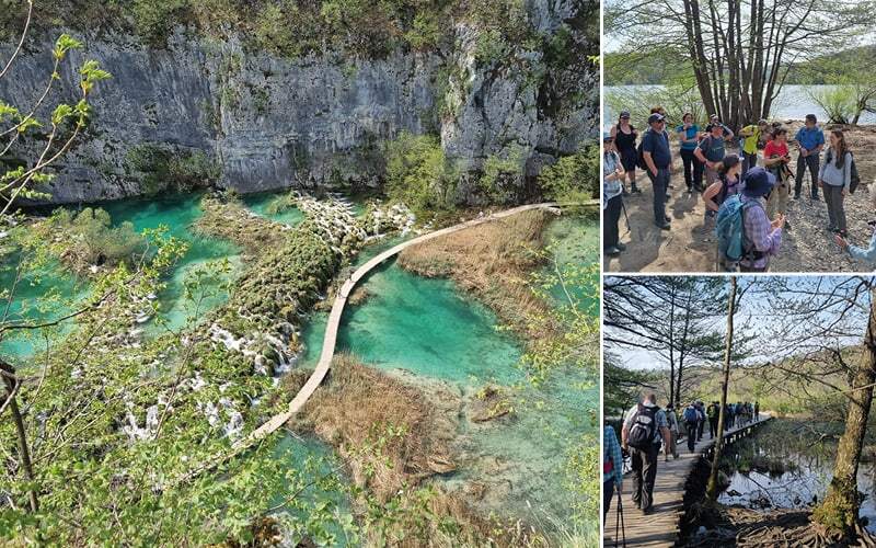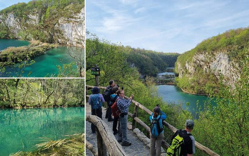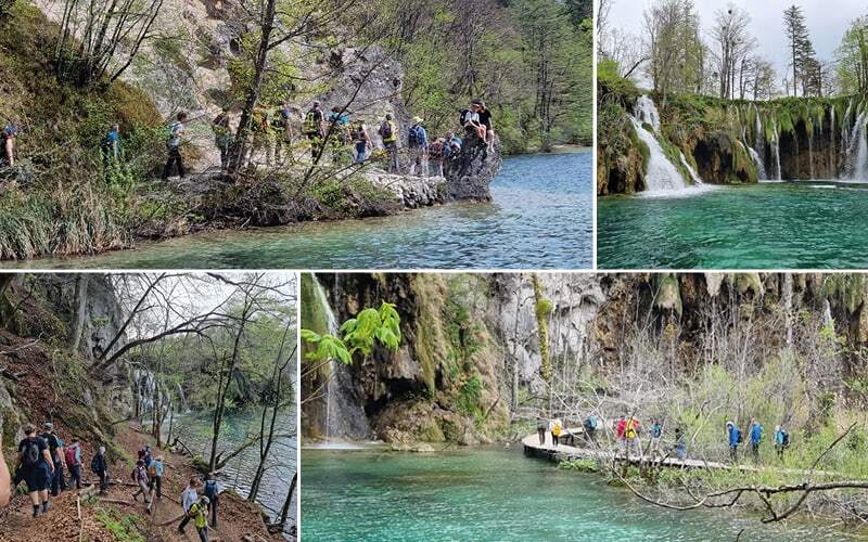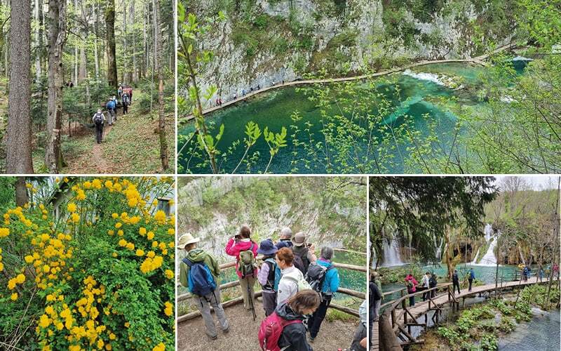Es fehlen uns noch die oberen Seen, heute wandern wir in dem Gebiet wo der berühmte Film «Ein Schatz im Silbersee» gedreht wurde. Wir dürfen wieder auf das Boot, es ist eine kurze Strecke, 200 Meter um auf die andere Ufer-Seite zu kommen. Dann wieder zu Fuss. Wir wandern entlang den vier oberen Seen, erneut werden wir von der Schönheit der Kulisse überwältigt. Den kleinen Wasserfälle, die fröhlichen Bäche. Die Bergen spiegeln sich in den Seen mit einem wunderschönen Farbenkontrast.  Ein kleiner See ist inzwischen verschwunden, in diesem stark karstigen System sind die Ufer instabil und hier hat sich eine Lücke gebildet die das Wasser anders geführt.