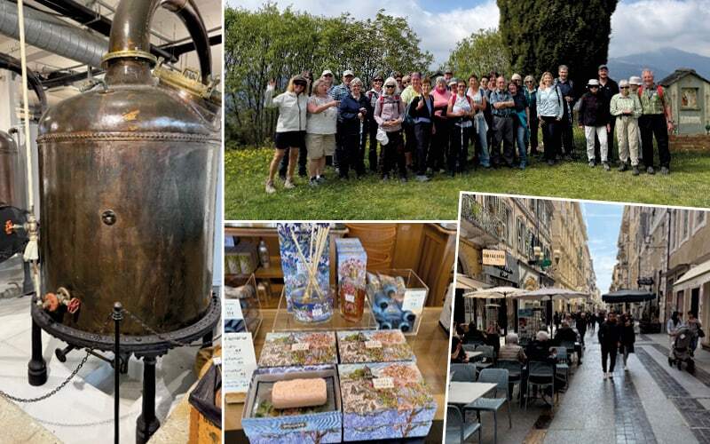 Am ersten Wandertag wanderten wir von Menton (Frankreich) alles am Meer entlang nach Monaco. Wir sind mitten in die Vorbereitungen des Formel-1-Rennens gelangt. So wanderten wir durch den Tunnel, auf Teilen der Rennstrecke und an der Haupttribüne vorbei. Das Fürstenpaar hat uns zwar nicht persönlich empfangen, den Palast haben wir uns natürlich angeschaut. Auf der Rückreise zum Hotel besuchten wir die Parfüm- und Seifenmanufaktur Fragonard. Nach der interessanten Führung brachte ich unsere weiblichen Gäste fast nicht mehr in den Bus. Ein schon sehr schöner Verkäufer verzauberte unsere weibliche Kundschaft.