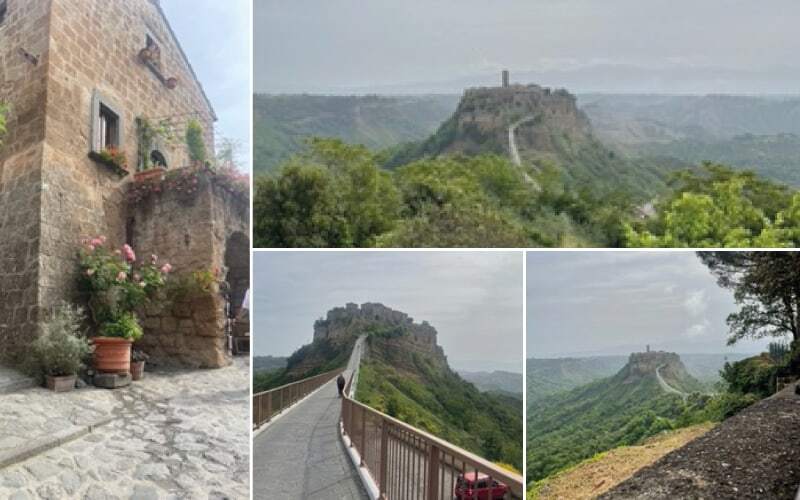 Der zweite Ausflug brachte uns nach Viterbo zur Besichtigung der alten Pabstresidenz mit den dazugehörigen Gebäuden. Natürlich ebenfalls mit lokaler, kompetenter Führung. Alles gebaut aus örtlichem Tuffstein, ein Überbleibsel aus urzeitlichem Vulkangestein, sehr rau, dafür solide. Alle geschichtlichen Bauten basieren auf diesem lokalen Gestein und gehen auf die Etrusker zurück. Der Residenzhügel ist teilweise mittels Shuttle Bus und dann zu Fuss über eine lange, neuere Brücke erreichbar. Dort gab es auch wie ein kleines Zentrum mit typischen Bars und Boutiquen – überall findet man schöne Andenken und Mitbringsel.