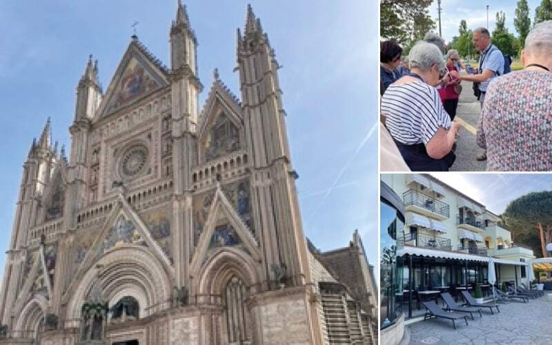 Der erste Ausflug führte uns mit unserem komfortablen, neuen Bus nach Orvieto zur Besichtigung. Die Altstadt (historisches Zentrum) ist etruskischen Ursprungs und natürlich auf einem steilen Hügel platziert. Wir wurden bequem mit der Zahnradbahn auf Niveau 3 gebracht, für die Gehbehinderten gab es einen Lift. Mit unserer lokalen, informativen Begleitung besuchten wir die Altstadt und natürlich die geschichtsträchtige Kathedrale mit Führung. Anschliessend gab es Freizeit. Am Nachmittag begaben wir uns auf die andere Seeseite von Bolsena zur vorgesehenen Schifffahrt. Im See gibt es zwei Inseln, die grössere haben wir mit dem Boot umrundet, die Ufer waren eindrücklich, sehr steil und bewaldet.