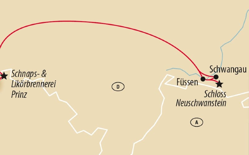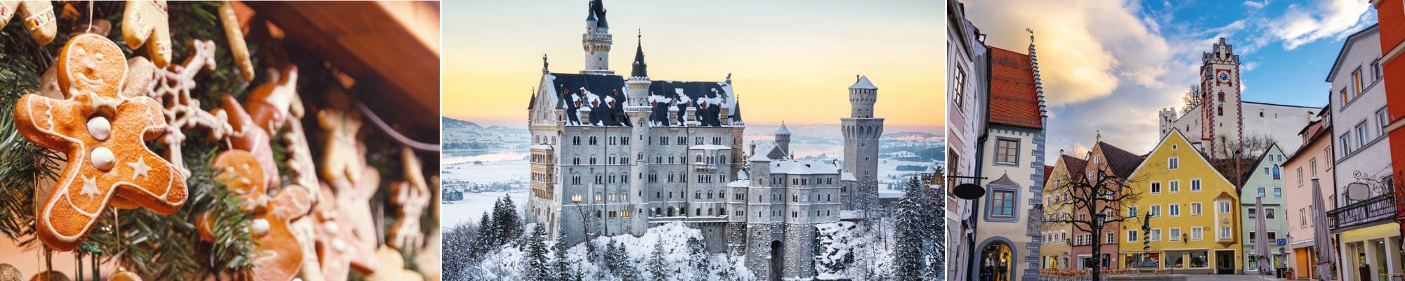 Nach dem Frühstück erwartet uns ein Höhepunkt der Reise: die Führung durch das weltberühmte Märchenschloss Neuschwanstein. Wir tauchen ein in die faszinierende Welt von König Ludwig II. und bestaunen die prunkvollen Säle. Anschliessend bummeln wir durch die festlich geschmückte Altstadt von Füssen. Hier bleibt Zeit für den Weihnachtsmarkt, kleine Einkäufe oder eine gemütliche Kaffeepause. Der Abend steht zur freien Verfügung – vielleicht für ein gutes Essen in einem der urigen Gasthäuser.