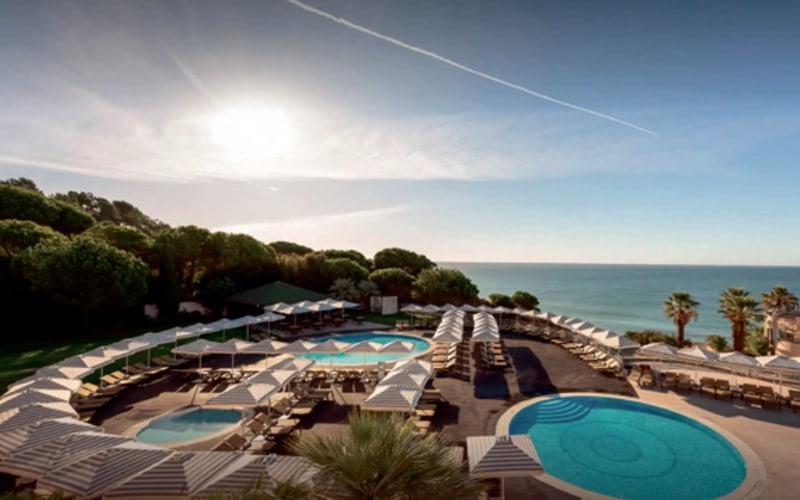 Das elegante 5-Sterne-Hotel liegt direkt am goldenen Sandstrand Santa Eulália. Die grosszügige Anlage mit vier Pools, schönem Spa-Bereich und mehreren Restaurants lädt zum Verweilen ein. Die stilvoll eingerichteten Zimmer bieten vollen Komfort – viele mit Meerblick. Wer mag, flaniert abends zum Sonnenuntergang oder entspannt auf der Terrasse mit einem Glas Vinho Verde.