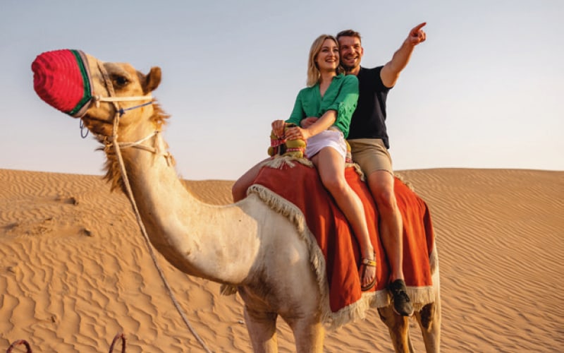 Freier Vormittag. Am Nachmittag starten wir zur Wüstensafari: Tradition trifft Erlebnis: Wir gleiten mit dem Jeep über die Dünen, lassen uns beim Kamelritt den Wind um die Nase wehen – stimmungsvoller Abend mit BBQ unter freiem Himmel. Rückfahrt und Übernachtung.