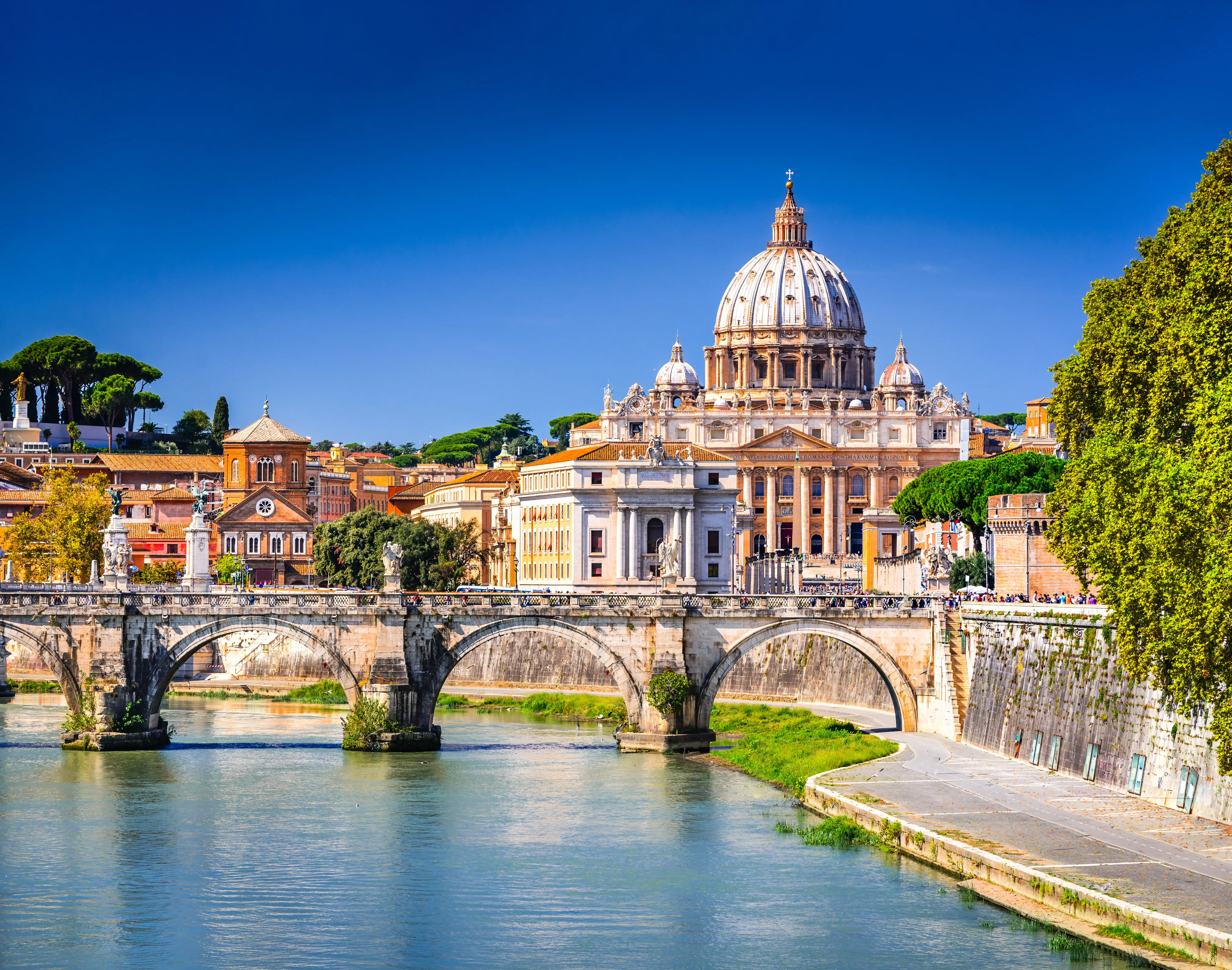 Zu den wichtigsten Sehenswürdigkeiten von Rom zählen das Kolosseum und natürlich der Petersdom mit der Kuppel von Michelangelo.