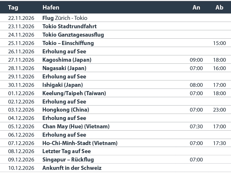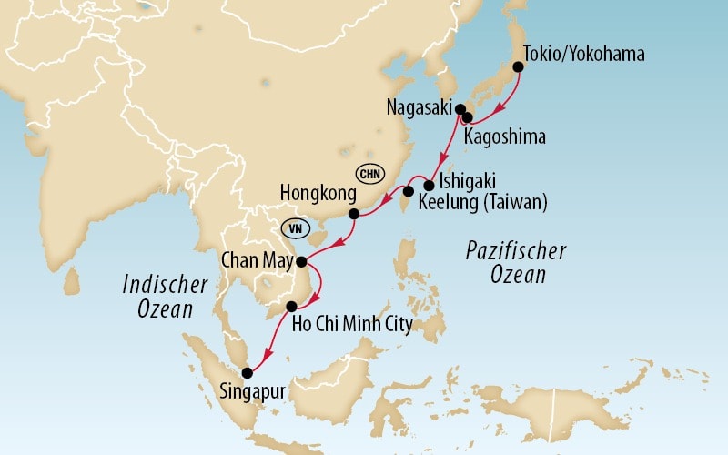 Grosse Asien-Kreuzfahrt von Tokio nach Singapur