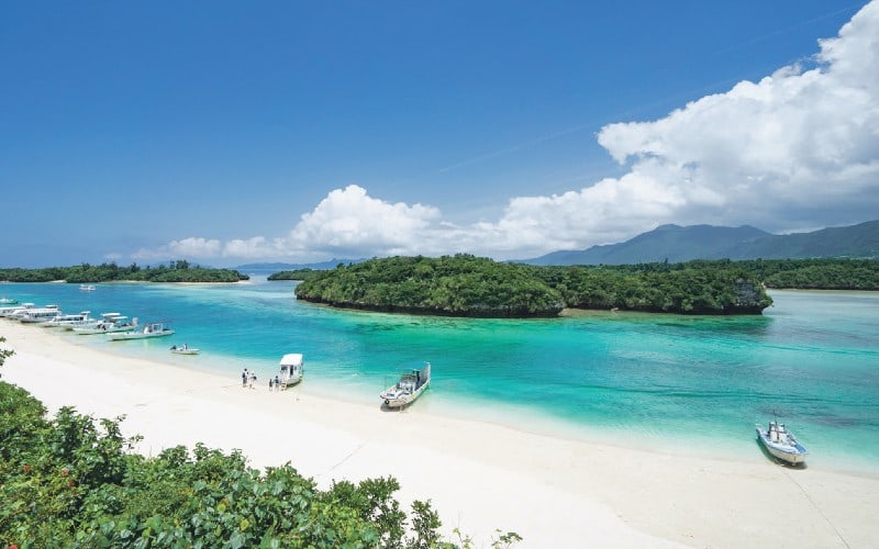 Ishigaki liegt in der Provinz Okinawa und ist mit seinem subtropischen Klima ein beliebter Ferienort. Kilometerlange weisse Sandstrände mit Palmen laden zum Entspannen ein – ein Stück Südsee in Japan.