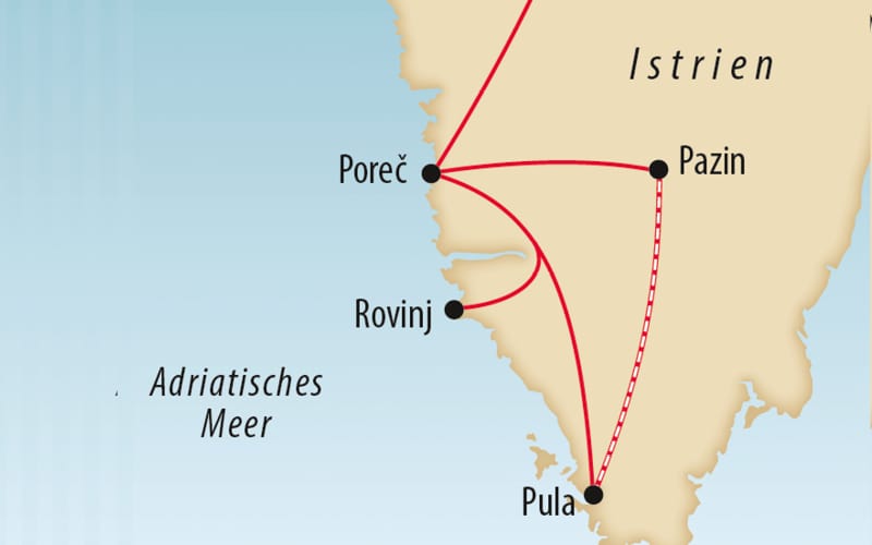Lust auf eine kleine Auszeit voller Genuss? Kommen Sie mit uns nach Istrien und erleben Sie mediterrane Lebensfreude, kulinarische Höhepunkte und malerische Küstenstädte. Ob unterwegs im exklusiven Weinzug durch die sanften Hügel, beim Probieren regionaler Spezialitäten oder beim Flanieren durch charmante Küstenperlen – diese Reise ist ein Fest für alle Sinne!