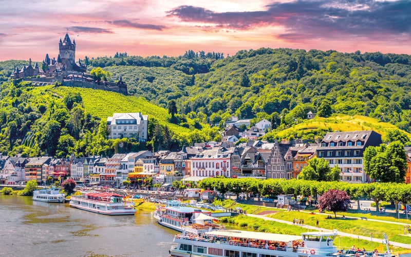 Beilstein gilt als «Dornröschen der Mosel» – kleine Gassen, historische Fassaden und Moselromantik pur. Am Nachmittag entdecken wir Cochem bei einem spannenden Rundgang und einer genussvollen Weinprobe (*). Abends erwartet uns das festliche Galadinner an Bord.