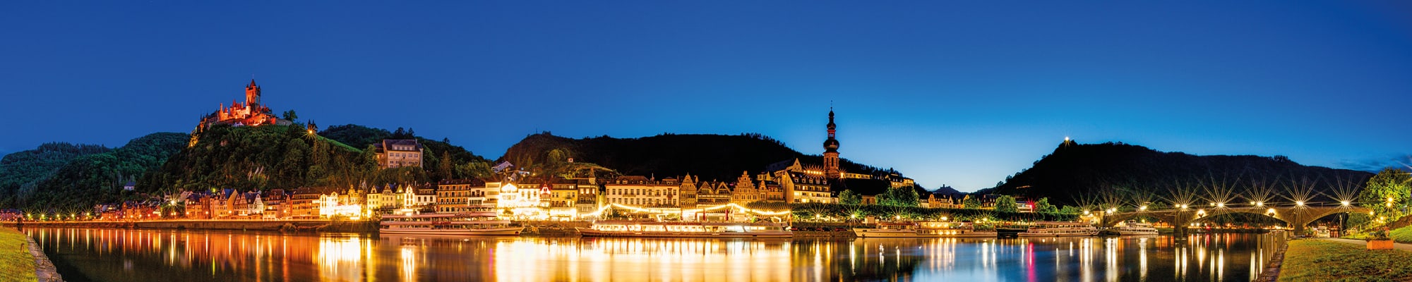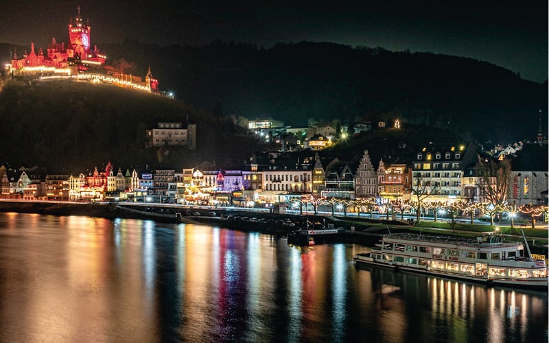Erleben Sie eine Adventsreise voller Charme und Genuss: Vom familiengeführten Hotel entdecken wir die zauberhafte Moselregion bei einer gemütlichen Planwagenfahrt, degustieren feine Weine aus der Region und besuchen Cochem mit seiner beeindruckenden Reichsburg. Der besondere unterirdische «Mosel-Wein-Nachts-Markt» wird Sie verzaubern! Freuen Sie sich auf romantisch beleuchtete Weinkeller in einer einmaligen Atmosphäre.