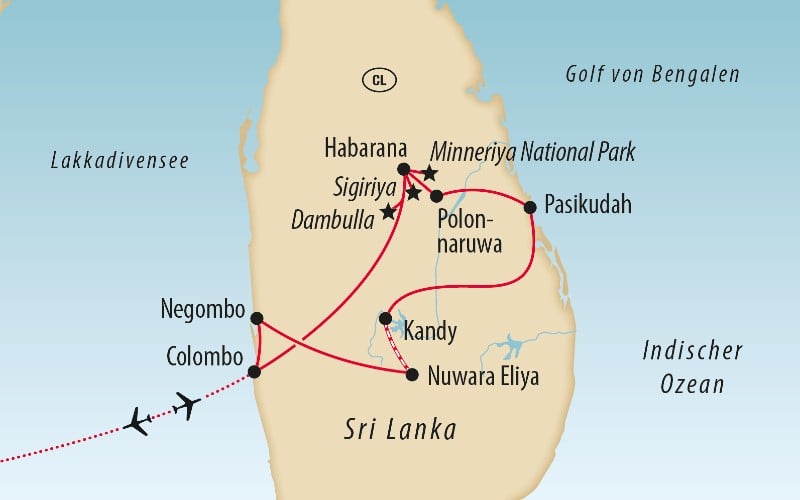- Rücktransfer zum Flughafen Colombo am 16. Reisetag