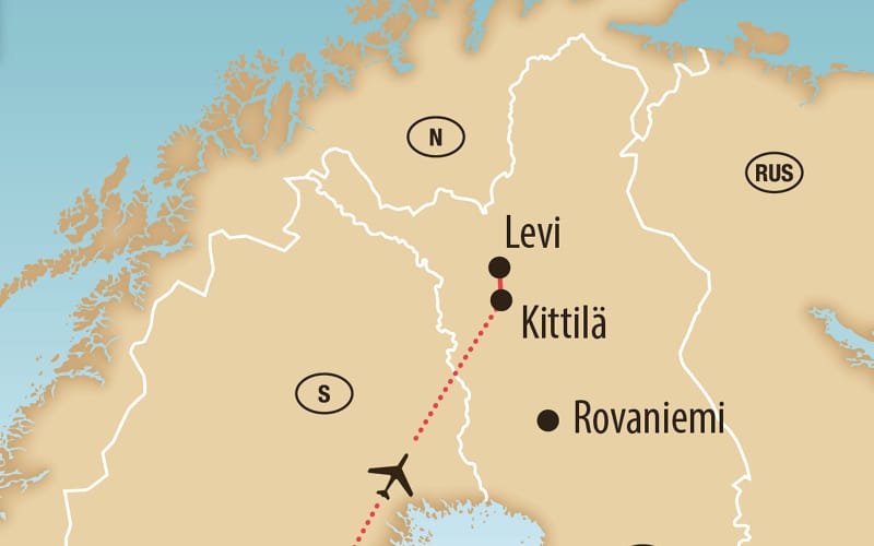 Direktflug mit Helvetic Airways (3.1.) oder Edelweiss(weitere Daten) nach Finnisch Lappland. Schon beim Anflug auf Kittilä glitzert die endlose Schneewelt Lapplands unter uns. Nach einem kurzen Transfer erreichen wir unser beliebtes Hotel in Levi – und tauchen ein in eine zauberhafte Winterwelt, wo Schnee und Stille regieren. Nachtessen im Hotel.