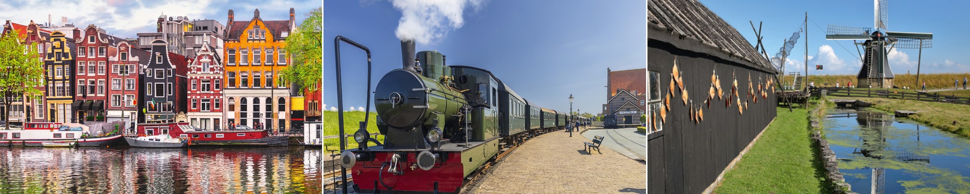 Romantischer und ursprünglicher als auf dieser Reise kann man Holland kaum erleben. Wenn die Dampflok pfeift, die Räder singen und der Zug langsam Fahrt aufnimmt, beginnt eine Reise voller Nostalgie. Wir tuckern durch Heidelandschaften und Alleen, fahren mit historischen Zügen ins malerische Ijsselmeer-Dreieck, geniessen eine Schiffsfahrt und bummeln durch Amsterdam mit seinen Grachten. Eisenbahnromantik vom Feinsten!